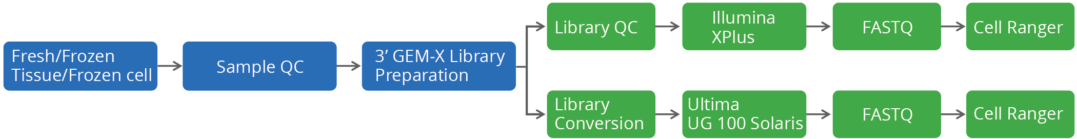 Generate up to 400M reads with high throughput and lower costs—powered by our one-stop single-cell workflow from Sample QC and Library Prep to Sequencing and Cell Ranger analysis.