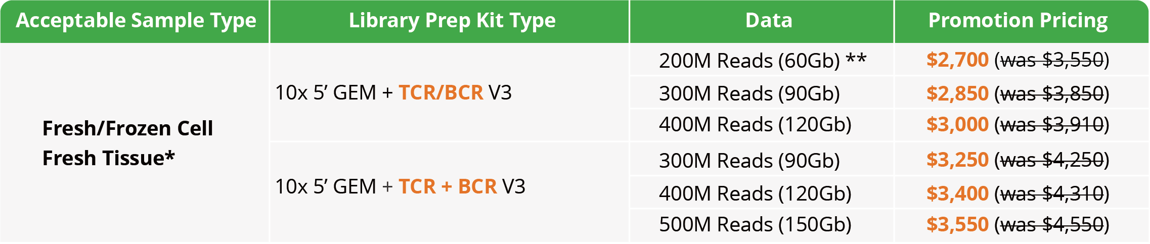 The promotion price is a package that includes QC, library preparation and sequencing.
