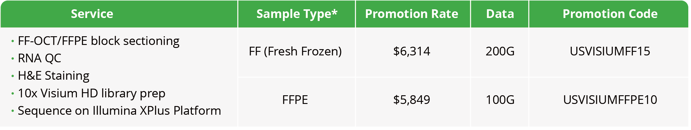 Limited-Time Offer: Enjoy up to 15% off all 10x Visium HD services. Contact us to learn more.
