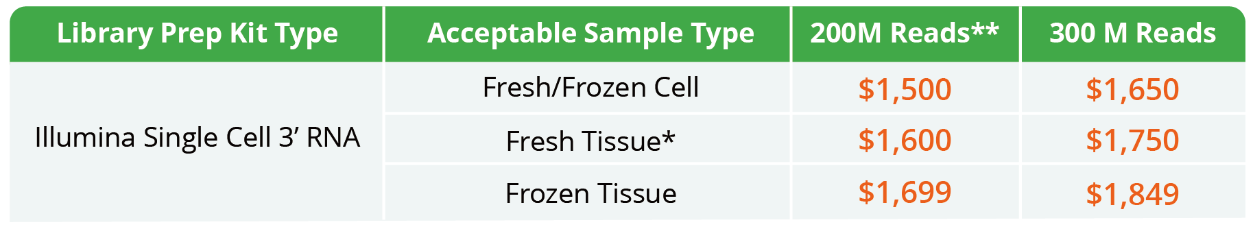 ** 200M Reads based on 10K Cells/Nuclei Captured Sequenced at 20K Paired Reads/Cell.